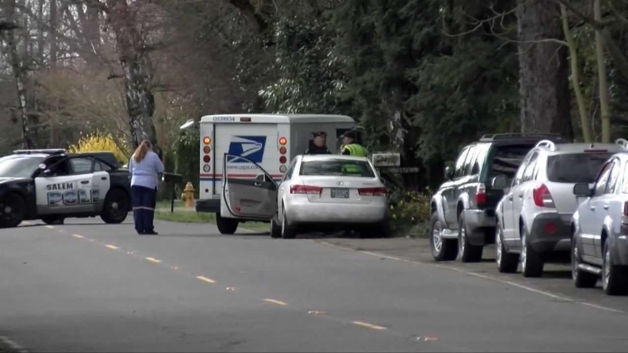 A woman is in the hospital after Salem police say a car hit her as she was getting her mail Thursday morning, and investigators say the suspect behind the wheel didn't stop for almost 100 yards.